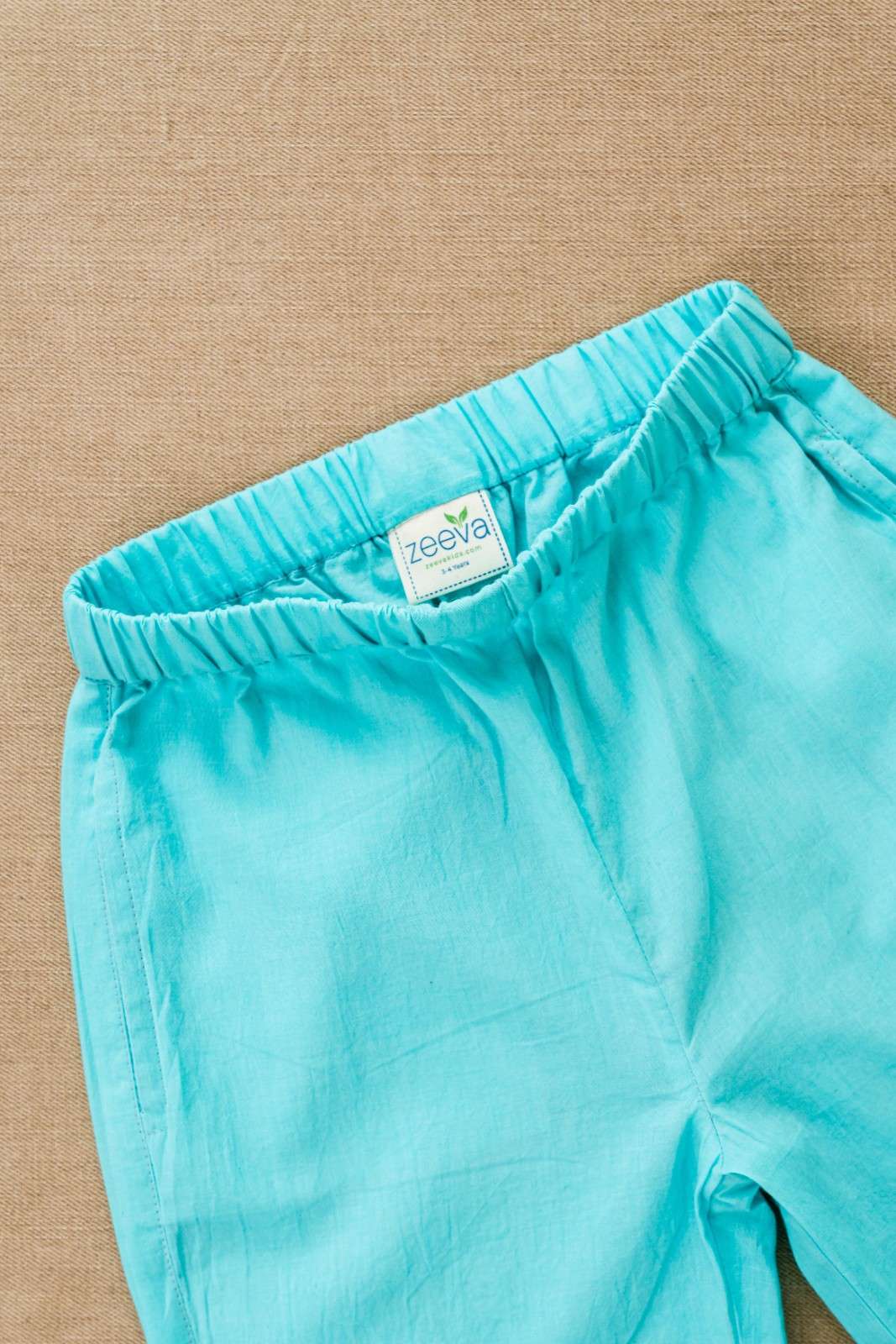 • Coordinated aqua blue cotton pants.